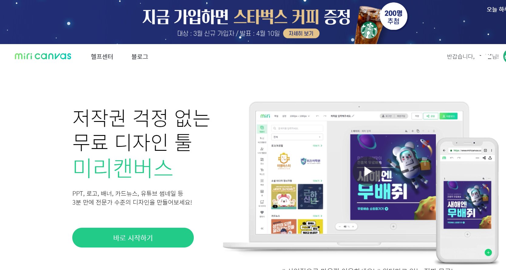 미리캔버스로 예쁜 이미지를 뚝딱 만드세요.