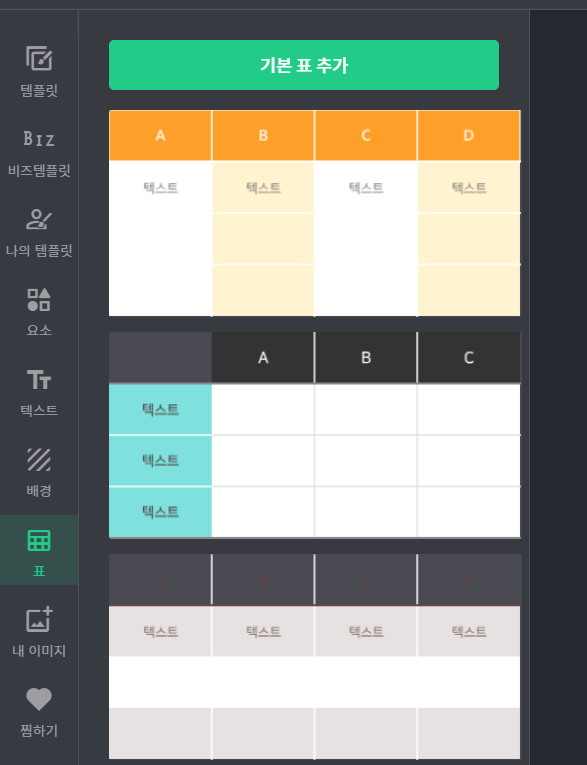 사이즈가 똑같거나 가로 세로 사이즈가 동일하다고 해도 사용 용도에 따라서 템플릿의 디자인이 달라지기 때문에 대대로 용도에 맞는 캔버스를 선택하시기 바랍니다.