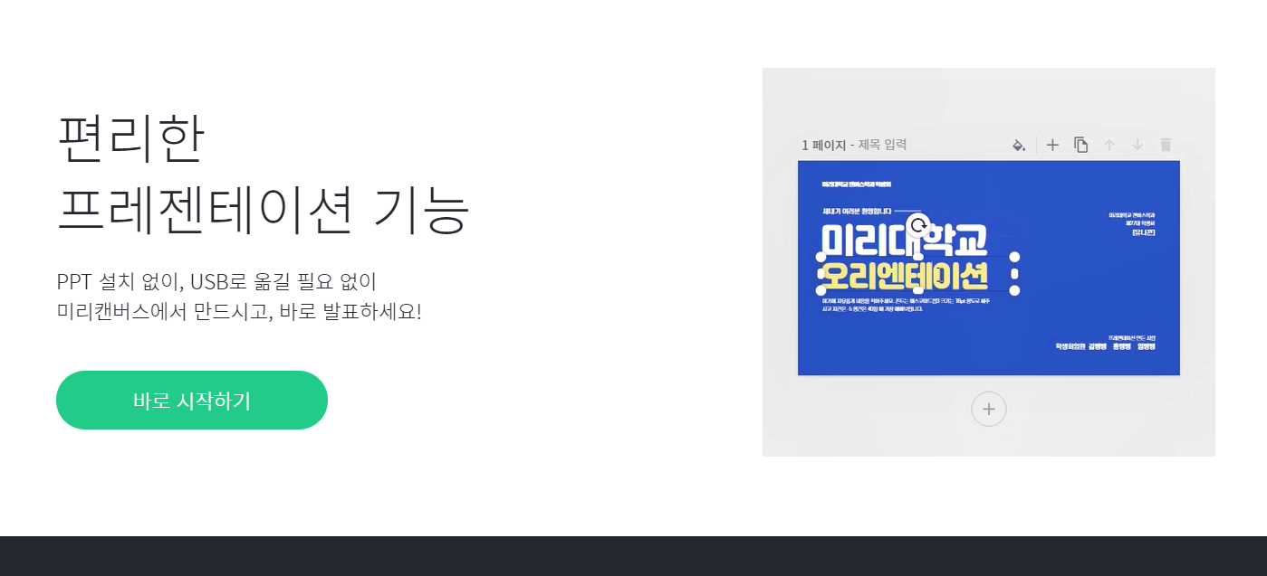 제가 오늘 소개할 사이트는 "미리캔버스" 입니다.