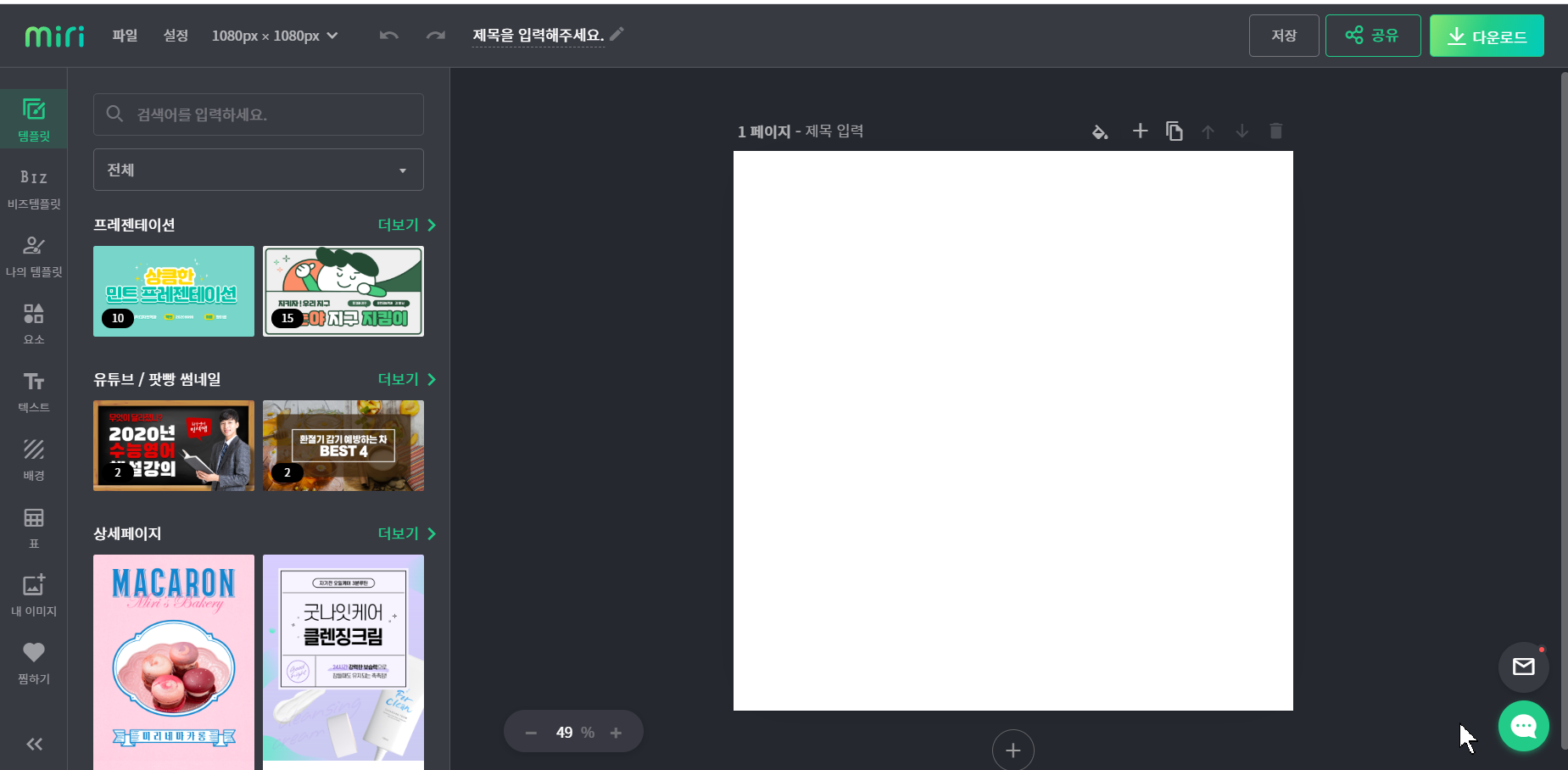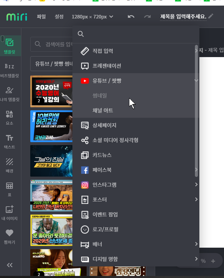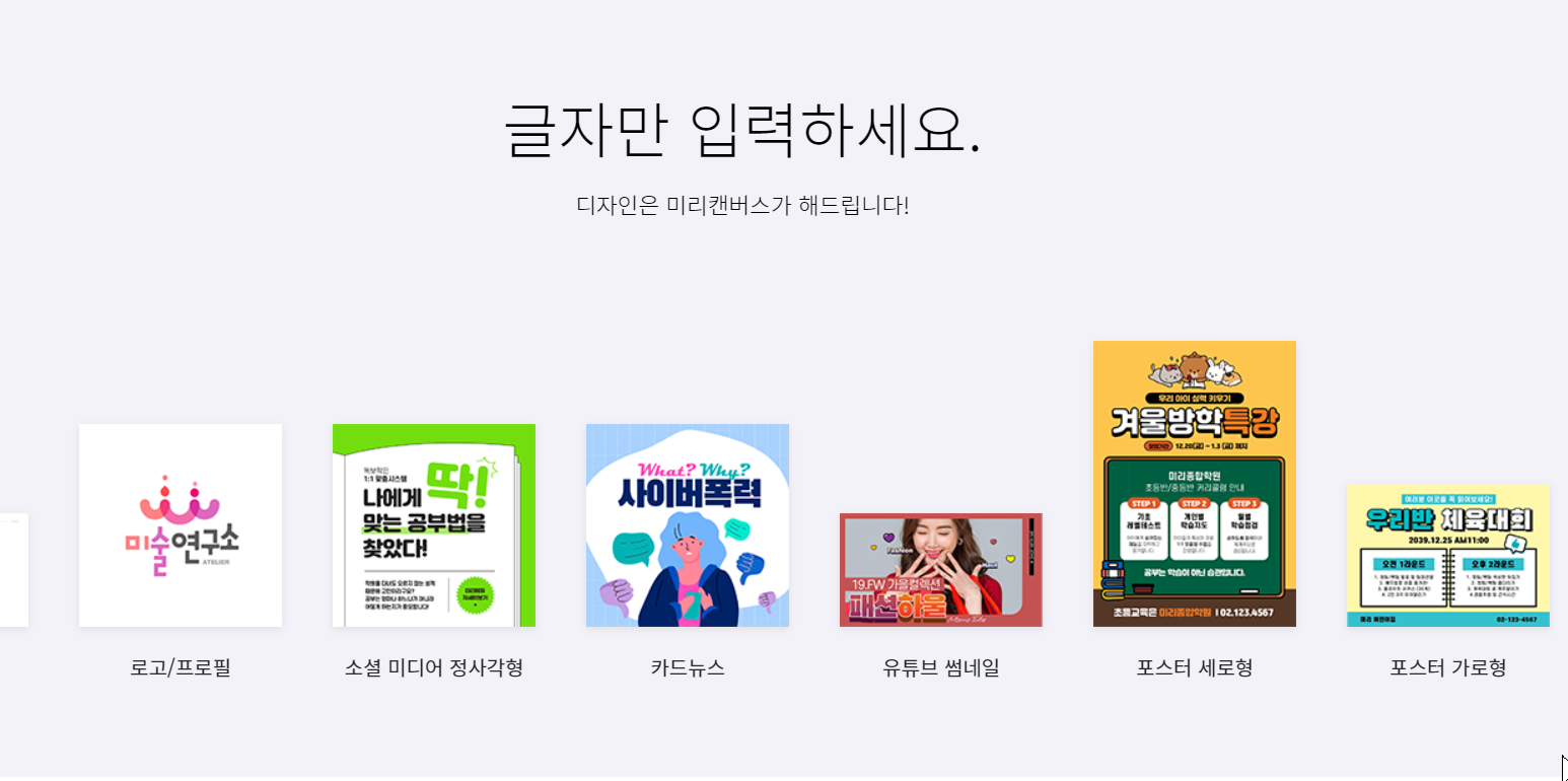 카드뉴스도 있고 유튜브 썸네일도 만들 수 있습니다. 포스터도 만들 수 있고 명함이나 전단지도 만들 수 있습니다.