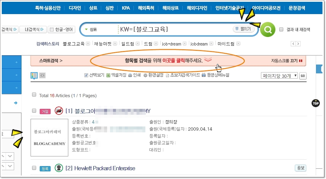 . 좀 더 상세한 검색을 하고자 한다면 아래에 보이는 스마트 검색을 클릭합니다.