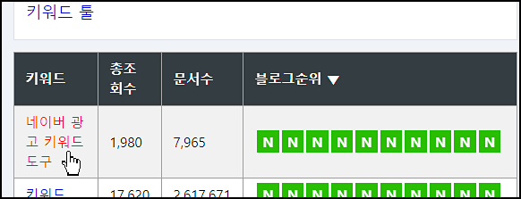 그러므로 우리는 고려하는 키워드들 중에서 실제 검색시에 블로그 영역이 가장 위에 자리하는 것을 선택해야 합니다.