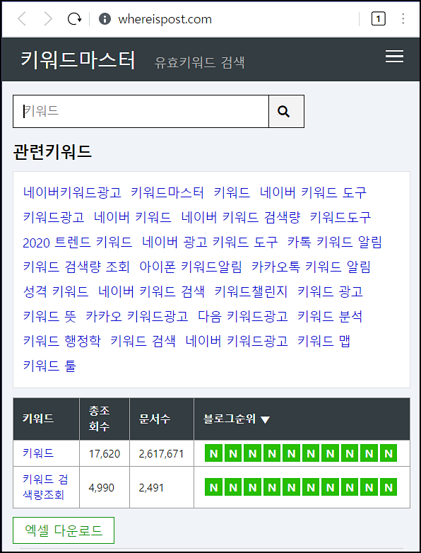 요번에는 심플하게 키워드를 조회해볼 수 있는 키워드마스터를 소개할게요.