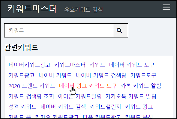 관련 키워드 목록에서 원하는 키워드를 누르면 아래와 같이 조회가 이루어집니다.