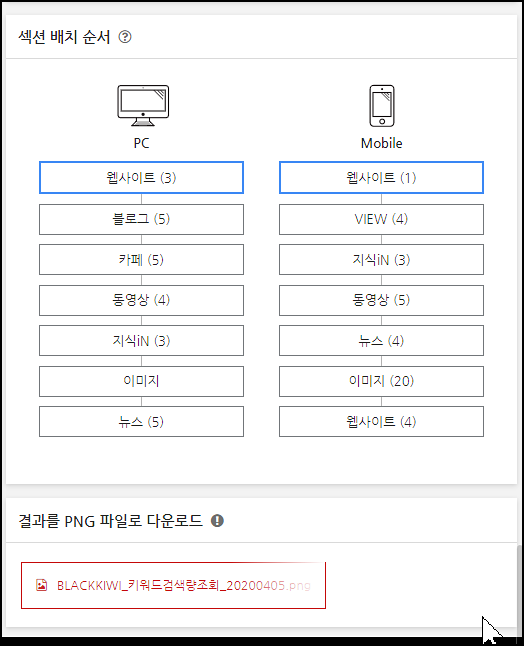 블랙키위는 이러한 각 섹션별 배치 순서를 시각적으로 보여줍니다. 정말 이로운 기능이며 우리는 이것을 이용함으로써 네이버에서 번거롭게 검색을 안 해봐도 되는 것입니다.