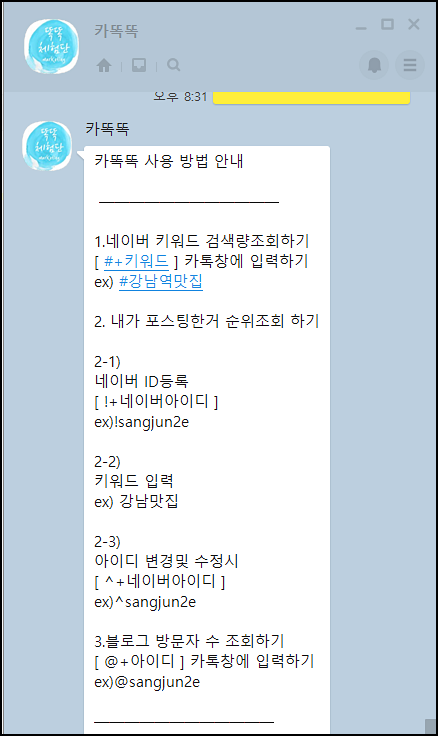 카카오톡에서도 가능한 카똑똑 사용하기