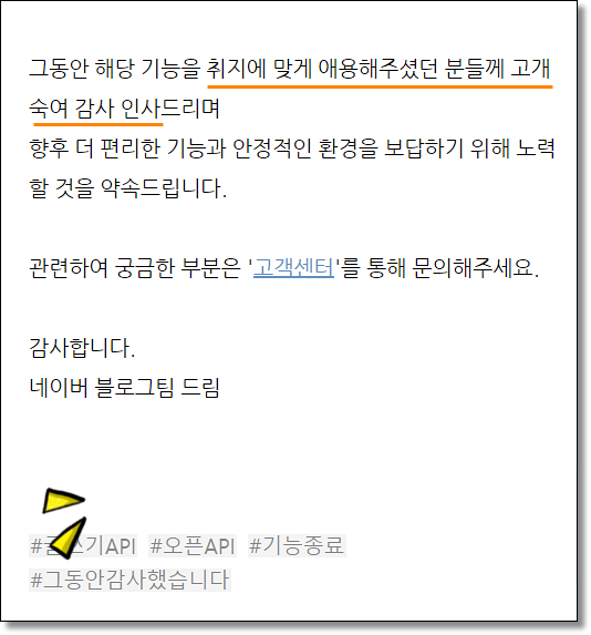 네이버는 4월 6일 네이버에 공식 블로그를 통하여 API 종료 선언을 하였습니다. 이유에 대해서도 설명을 해주었는데요. 지금부터 말씀 드리겠습니다.