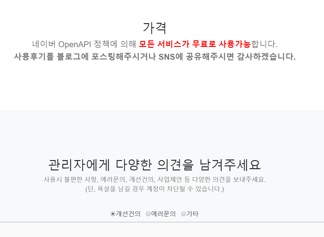 왜냐하면 ... 바로 네이버에서 제공하는 open api를 이용하기 때문입니다. open api는 비영리적으로 접근할 수 있는 권리만 부여되므로 무료인 것입니다.