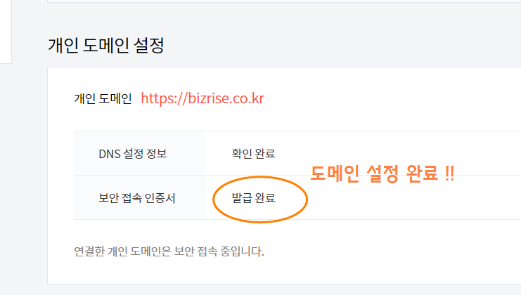 보안 접속 인증서가 '발급완료'라고 나오게 되며