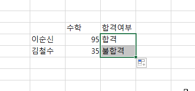 아래는 점수에 따라 합격, 불합격을 판단하여 표시하는 예입니다.