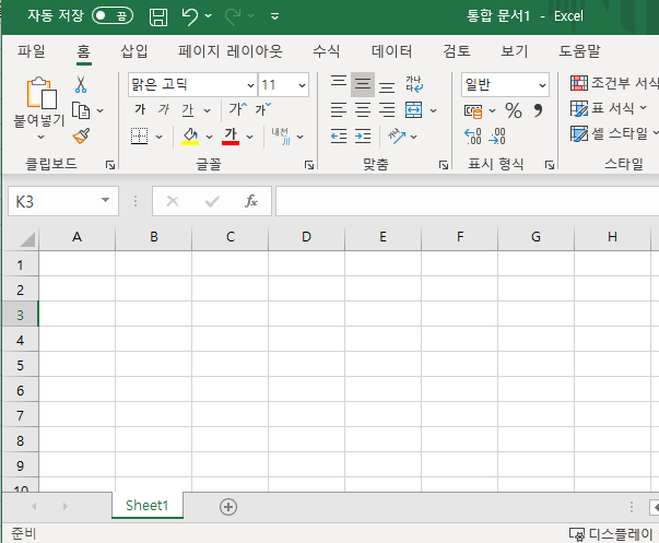 그래서 이 워크시트 여러개를 모은 1개의 엑셀파일을 '통합문서'라고 말합니다.