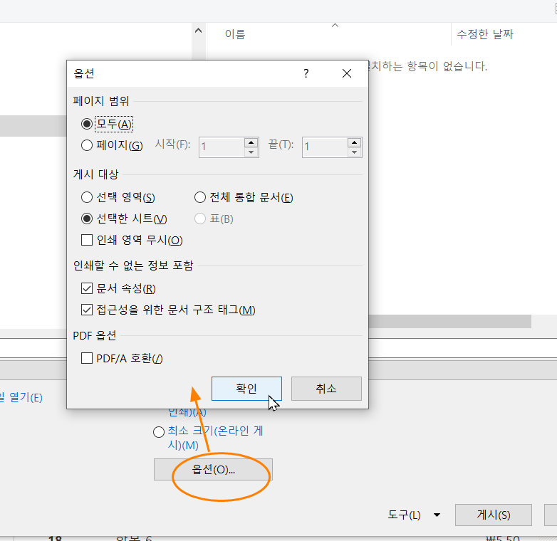 대략적으로 pdf파일로 출력할 범위를 정하는 옵션이네요.