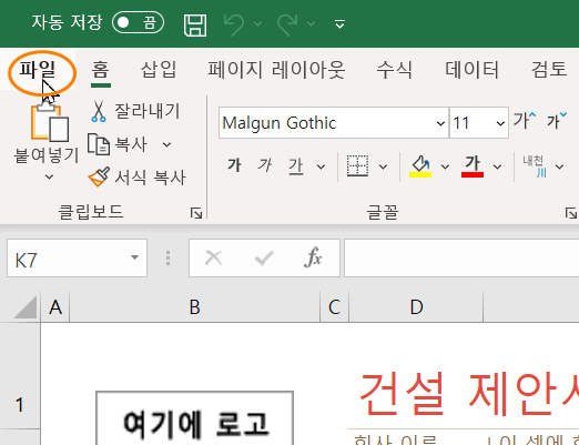 '파일' 메뉴를 누릅니다.