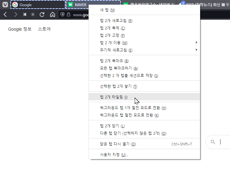 하지만 비발디 브라우저에서는 세팅만 하면 두 개의 탭을 동시에 볼 수 있습니다.