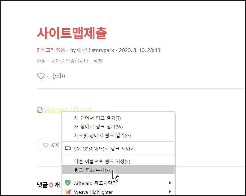 대충 제목에 '사이트맵제출' 이라고 쓰고요.