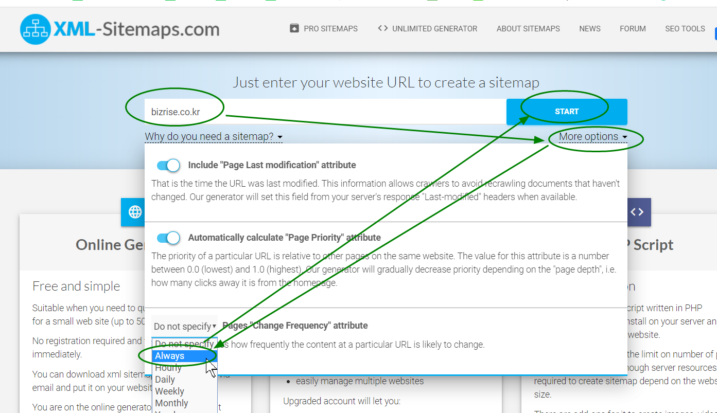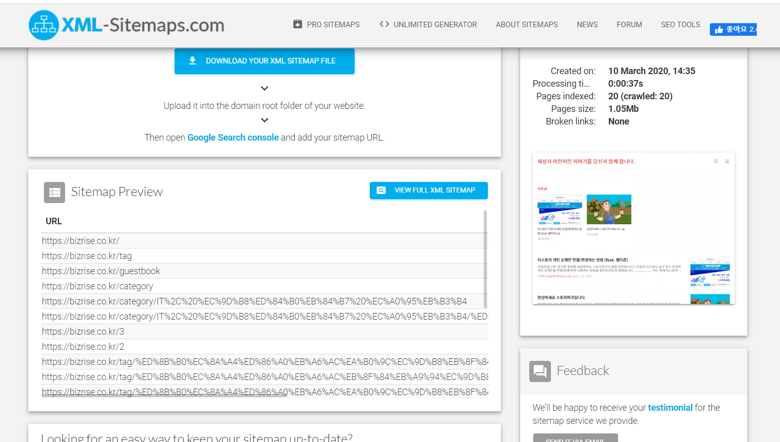 *주의 : 제가 개인 도메인을 사용해서 그런건지.... 많이들 알고 쓰고 계신 아래 사이트에서는 제대로 사이트맵을 만들어내지 못했습니다. 그러니 위 사이트를 이용하세요.