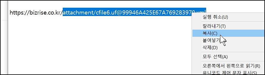 첨부된 파일의 주소를 아래 처럼 복사해주세요. (오른쪽 마우스 클릭)