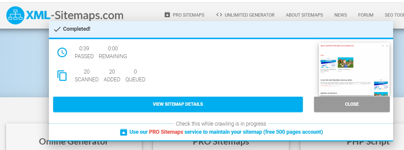'view sitemap details' 가 나오면 완료(파일생성)된 것입니다.