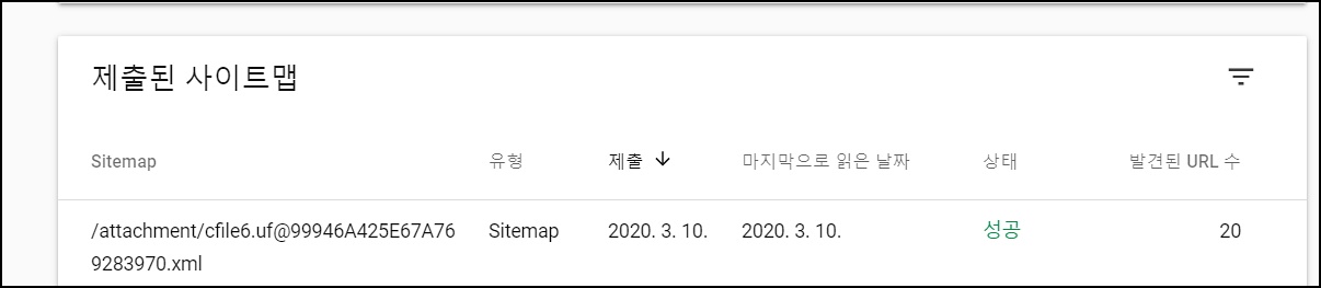 구글서치콘솔에 사이트맵을 등록하여서