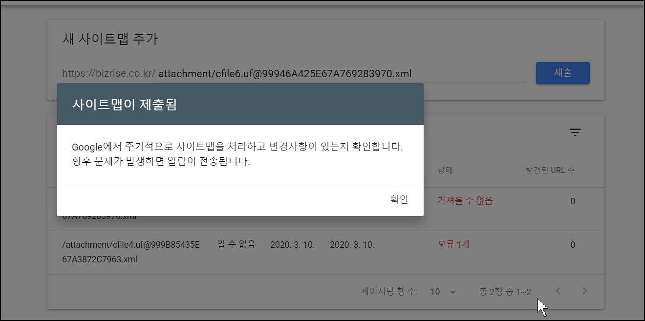 업로드될 사이트맵파일의 정상적인 주소를 얻을 수 있습니다.