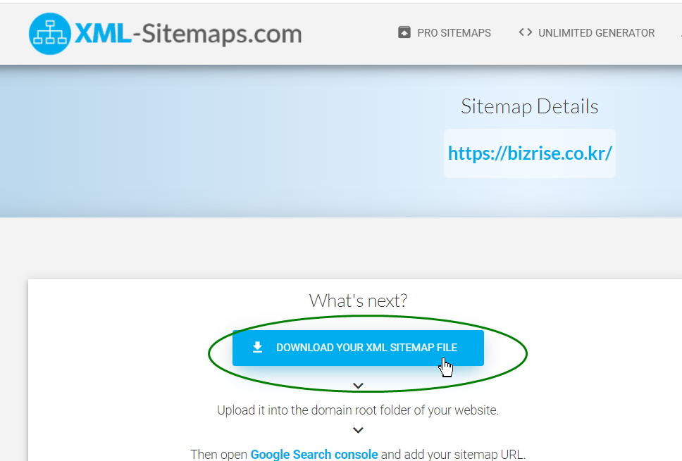 아래 보이는 'Download....'를 눌러서 사이트맵파일을 다운로드 받아주세요.