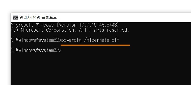이렇게 되면 최대 절전 모드를 끄게 됩니다. 그러면 윈도우즈는 최대 절전 모드의 할당했던 하드 디스크를 여유 공간으로 반환하게 됩니다.