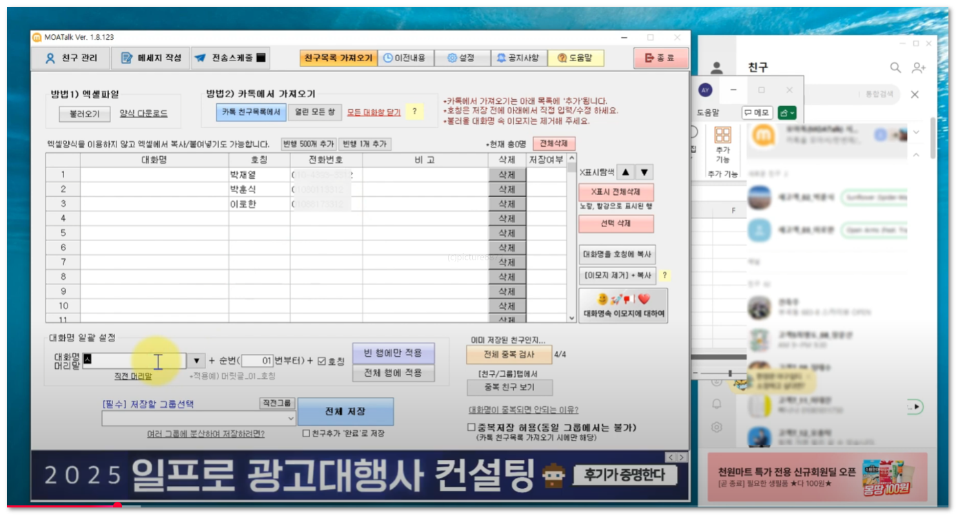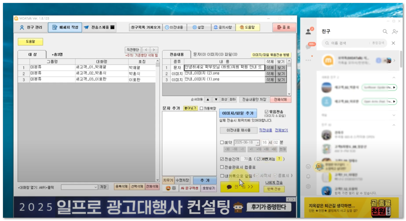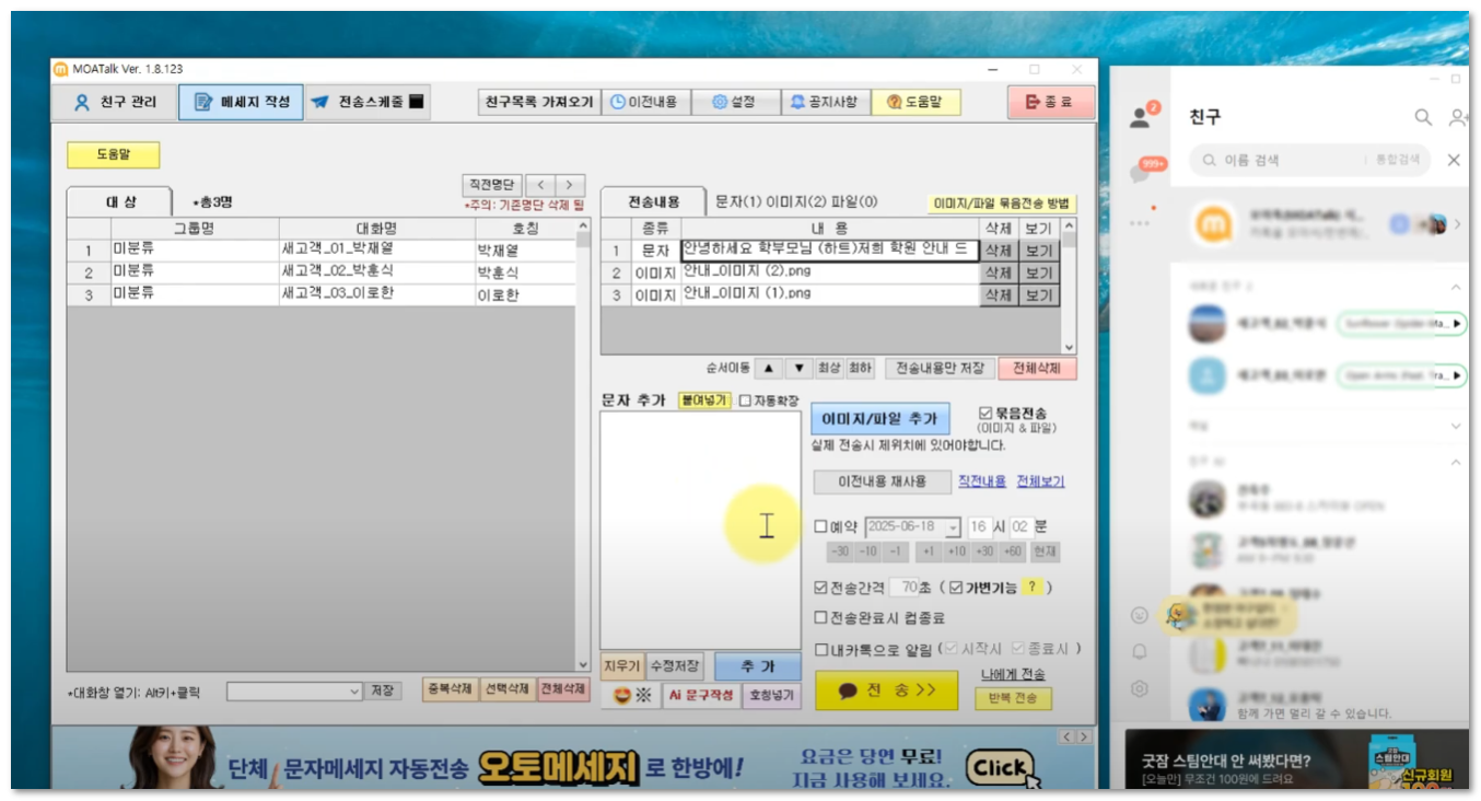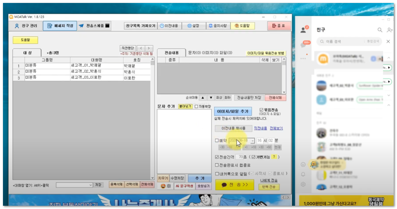 자동으로 1:1 메시지를 전송하는 프로그램입니다.