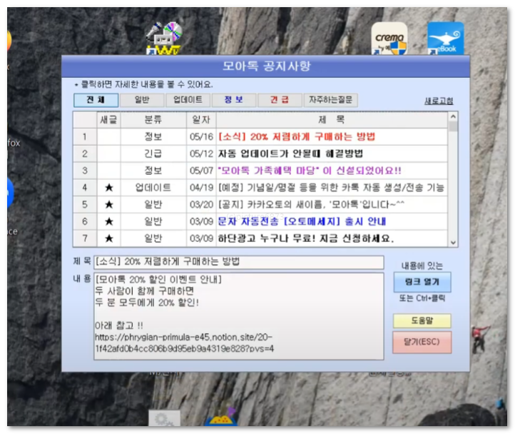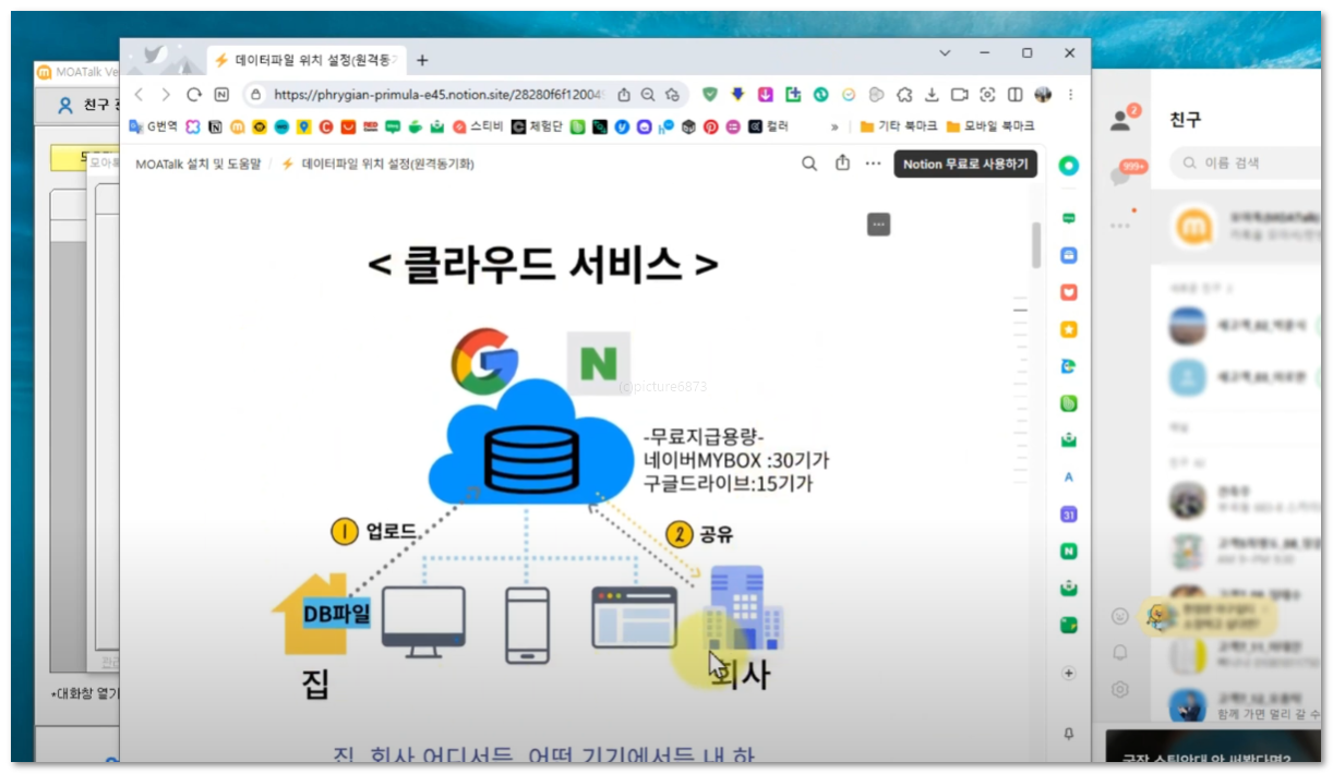 모아톡은 PC버전 카카오톡과 연동해