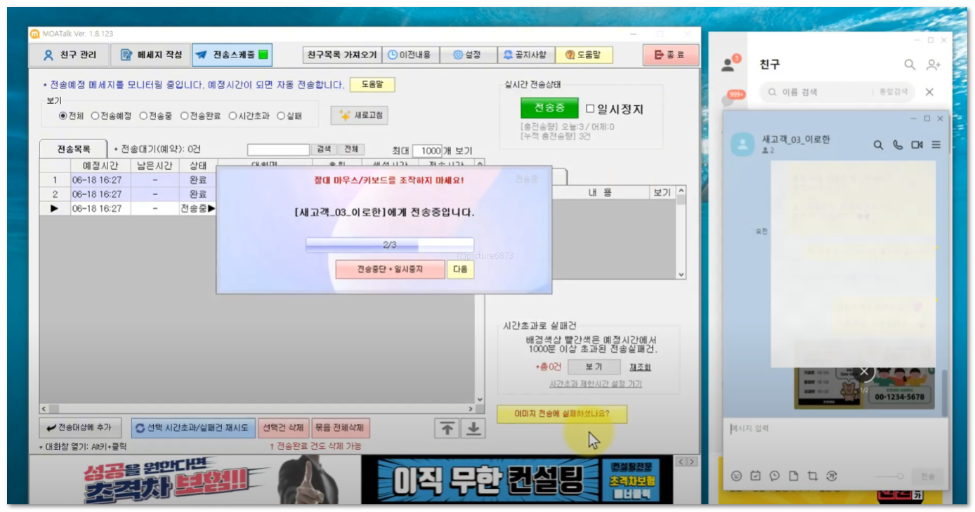 자동으로 1:1 메시지를 전송하는 프로그램입니다.